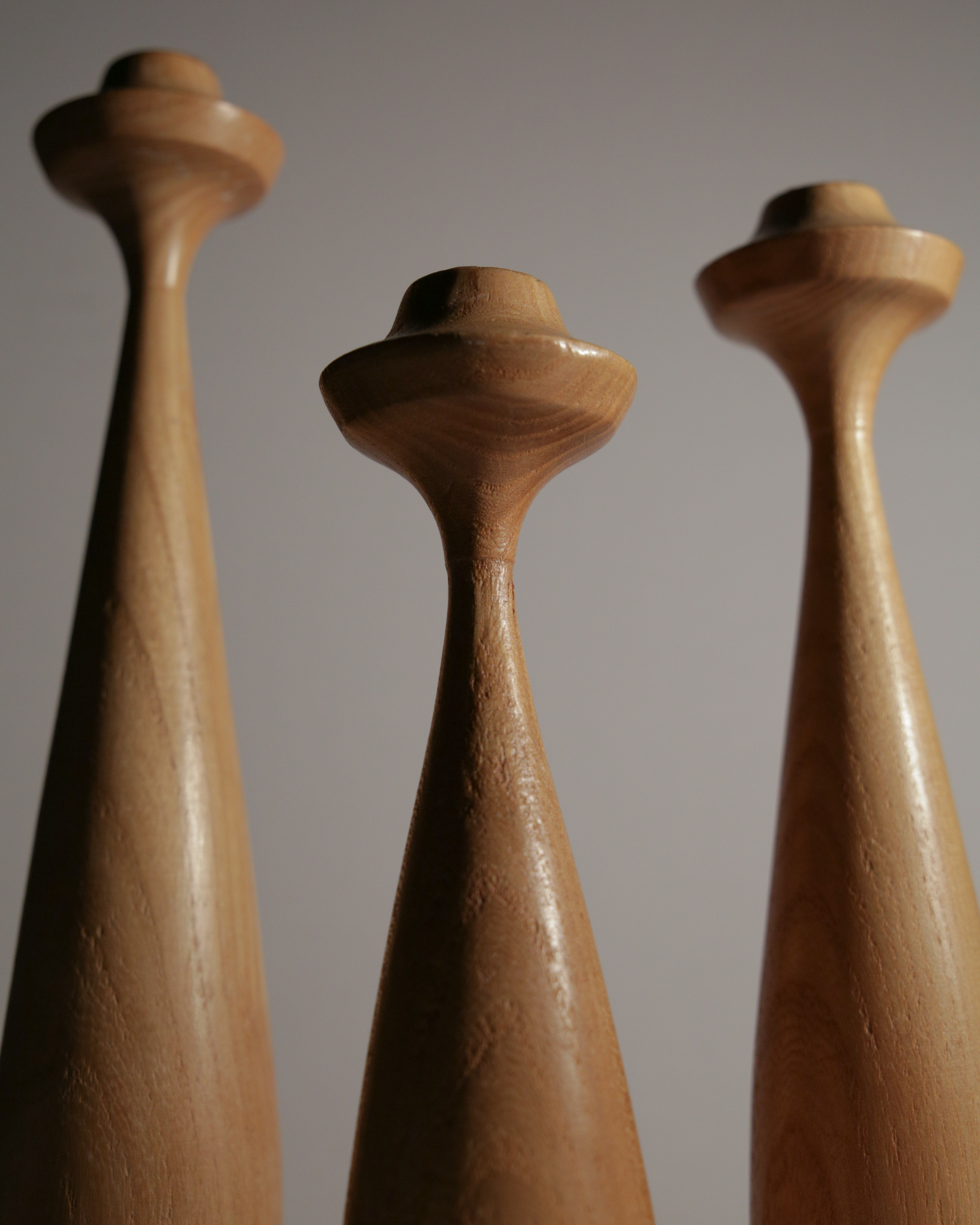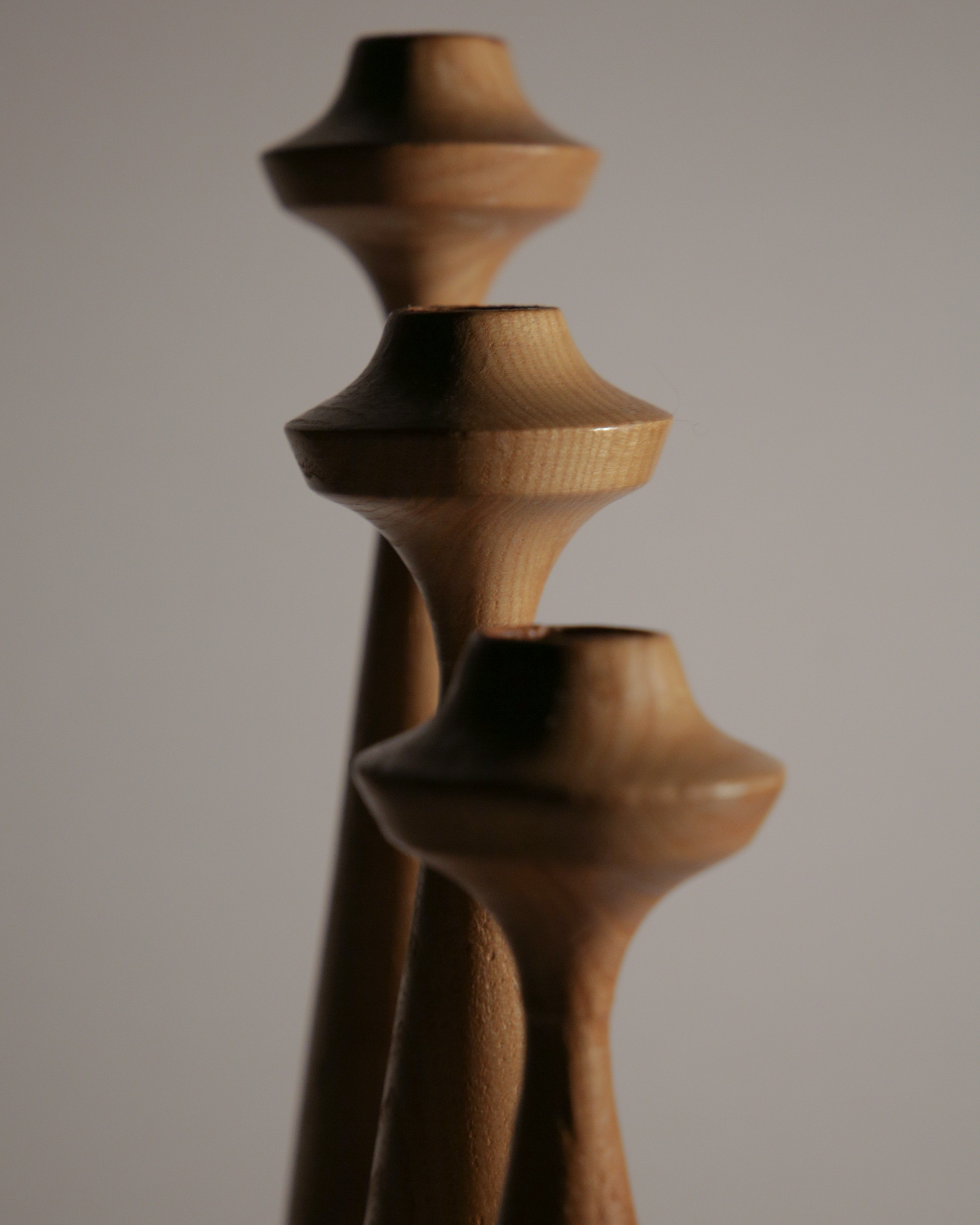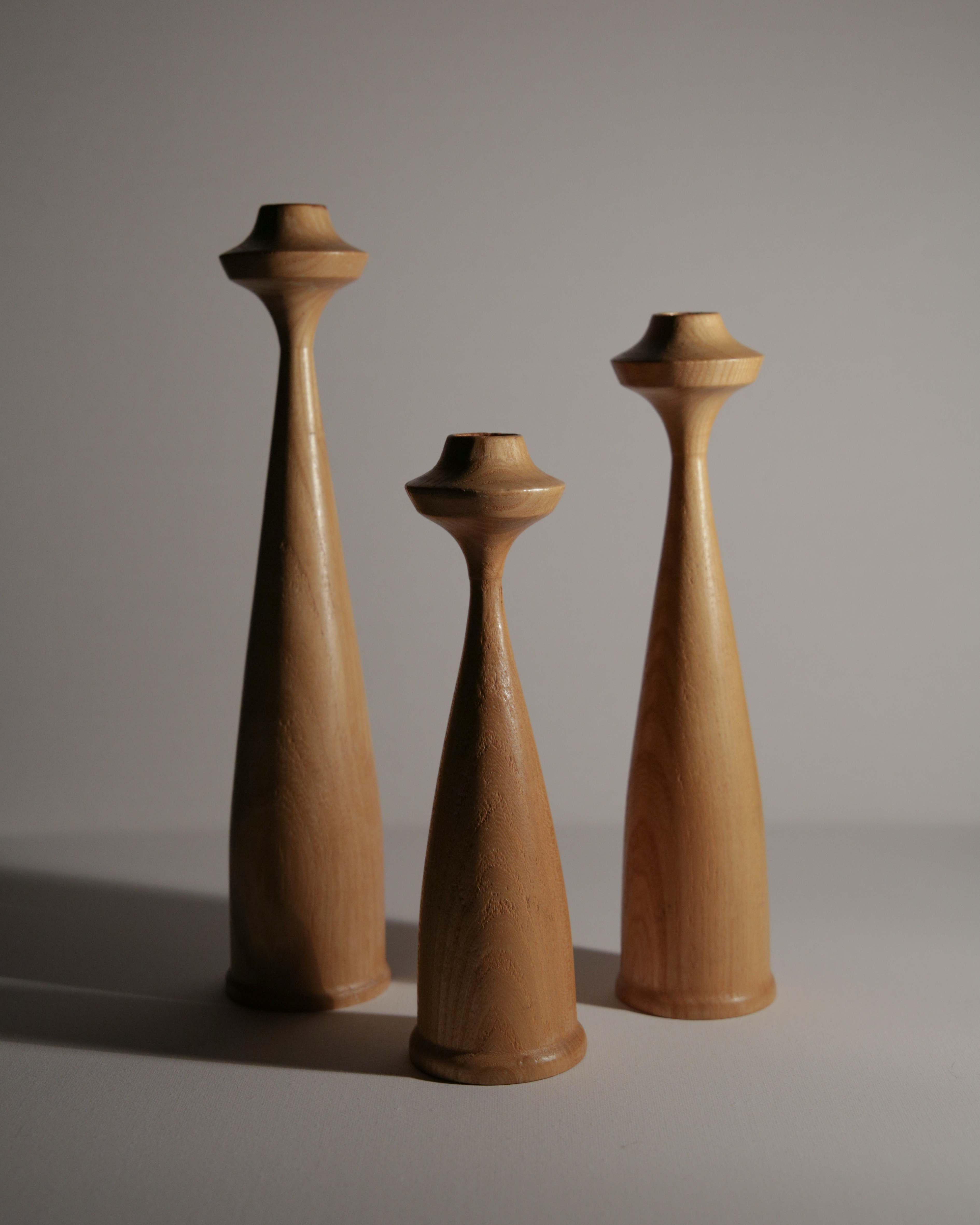 Elevate your home décor with this stunning set of three handcrafted wooden candle holders, a true testament to timeless design and vintage charm. Made in 1981, these beautifully turned pieces showcase the artistry and craftsmanship of a bygone era.