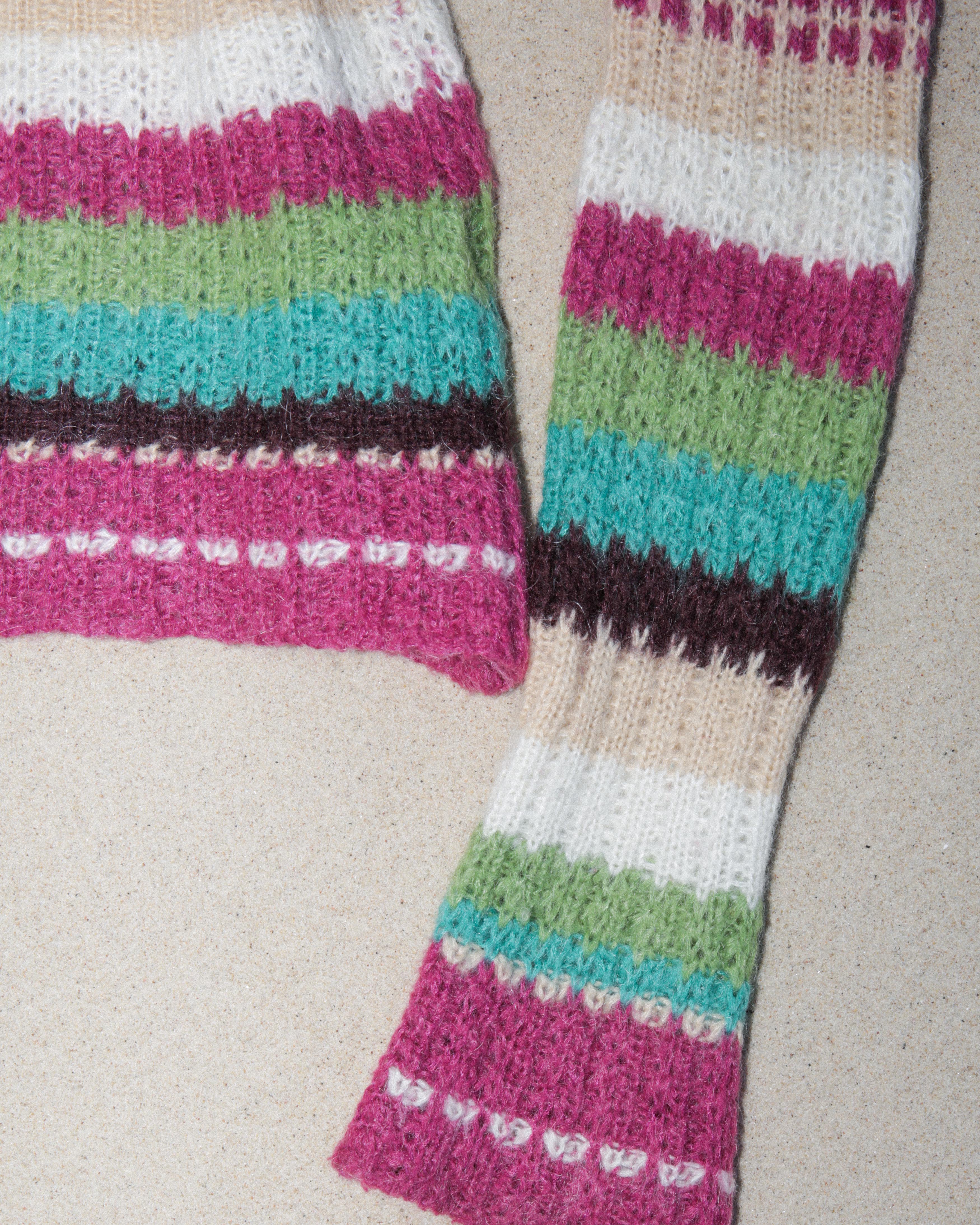 Light as air and soft as a hug — this striped mohair turtleneck surprises with how breathable it is. In juicy shades of berry, mint, and cream, it’s the kind of sweater you pull on when summer evenings get chiller.