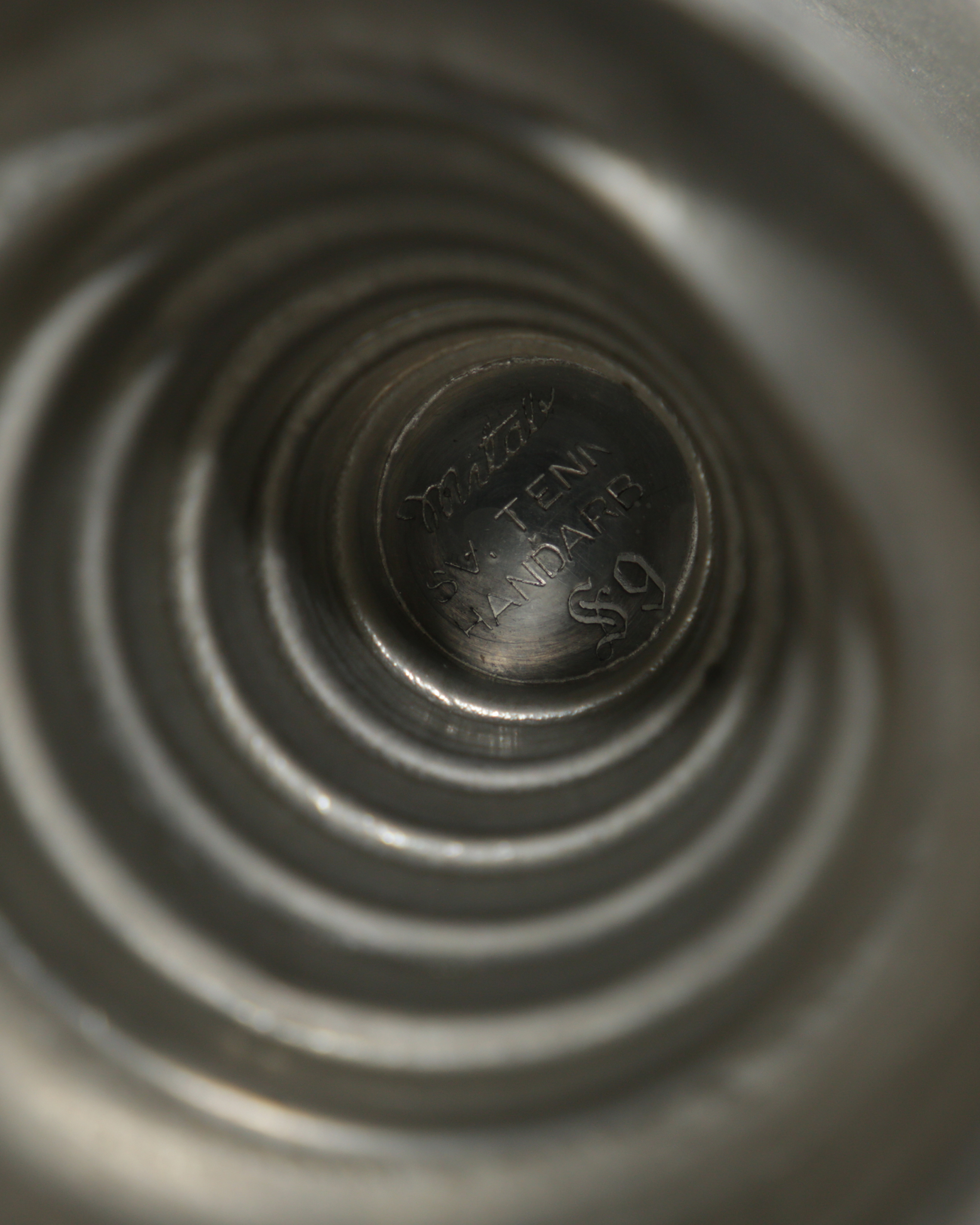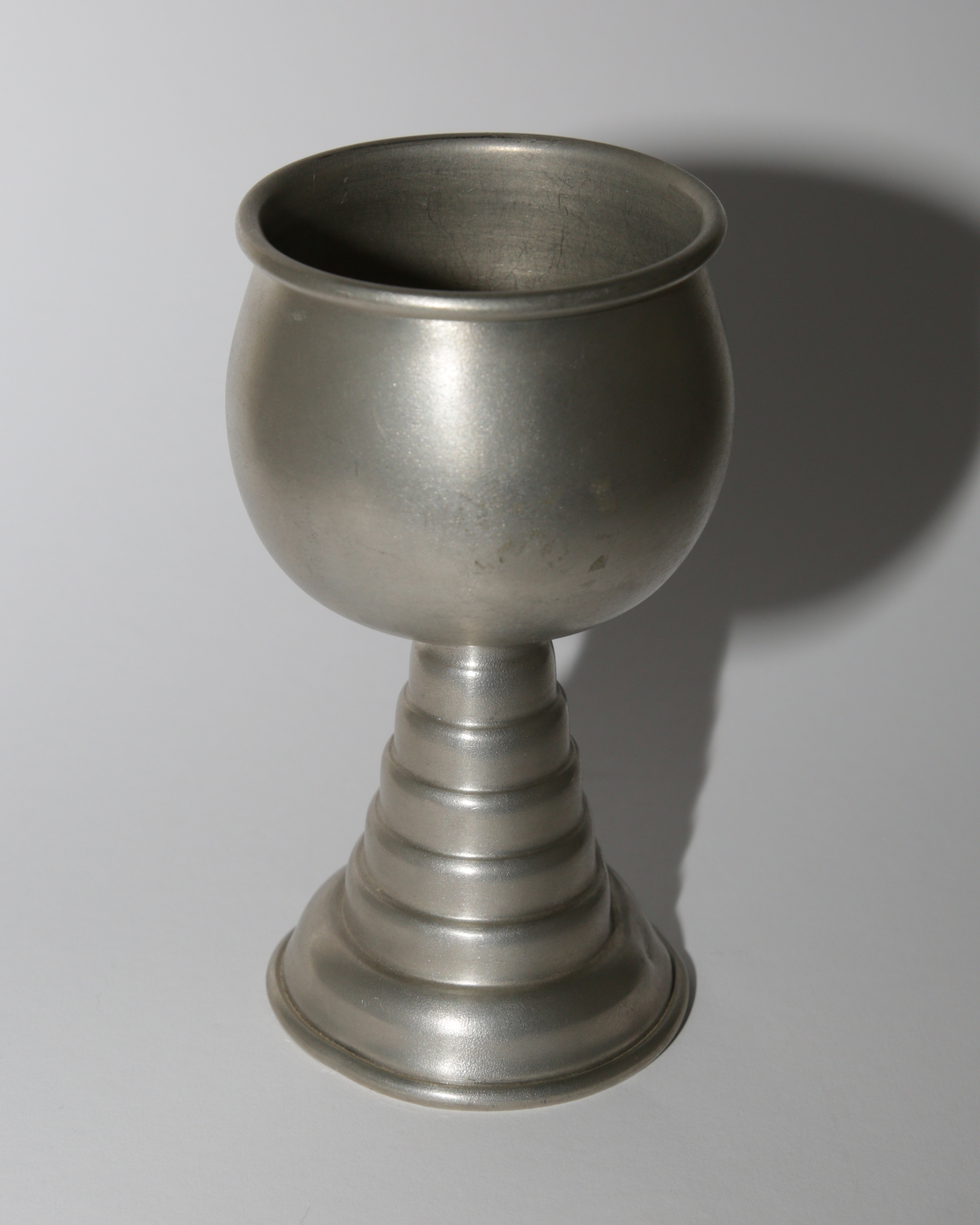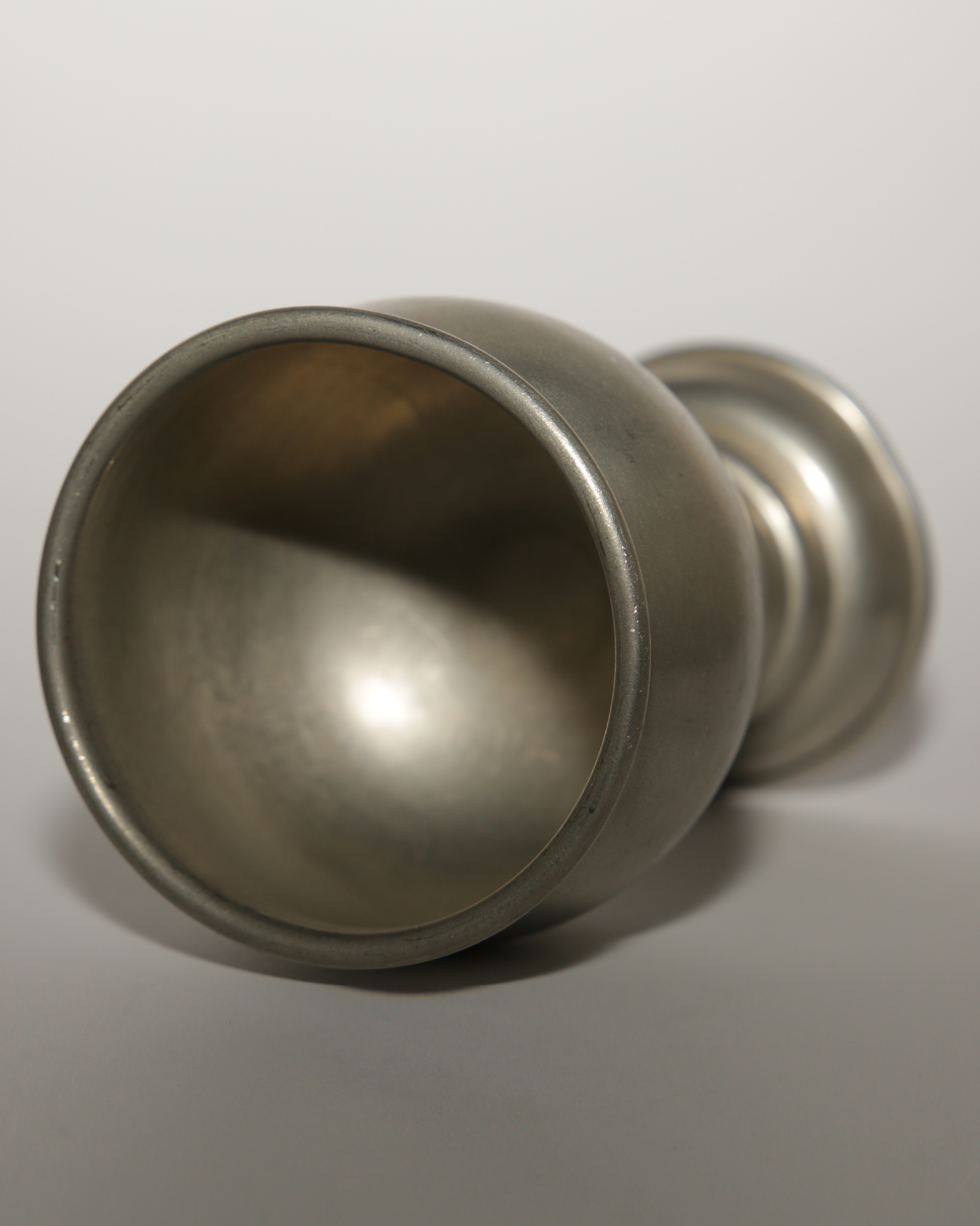 Mid-century Swedish pewter goblet with stepped base and soft, matte finish.Handcrafted from SV. TENN (Swedish pewter) and signed “Mital” — likely a small workshop or individual maker active in the 1950s–70s.