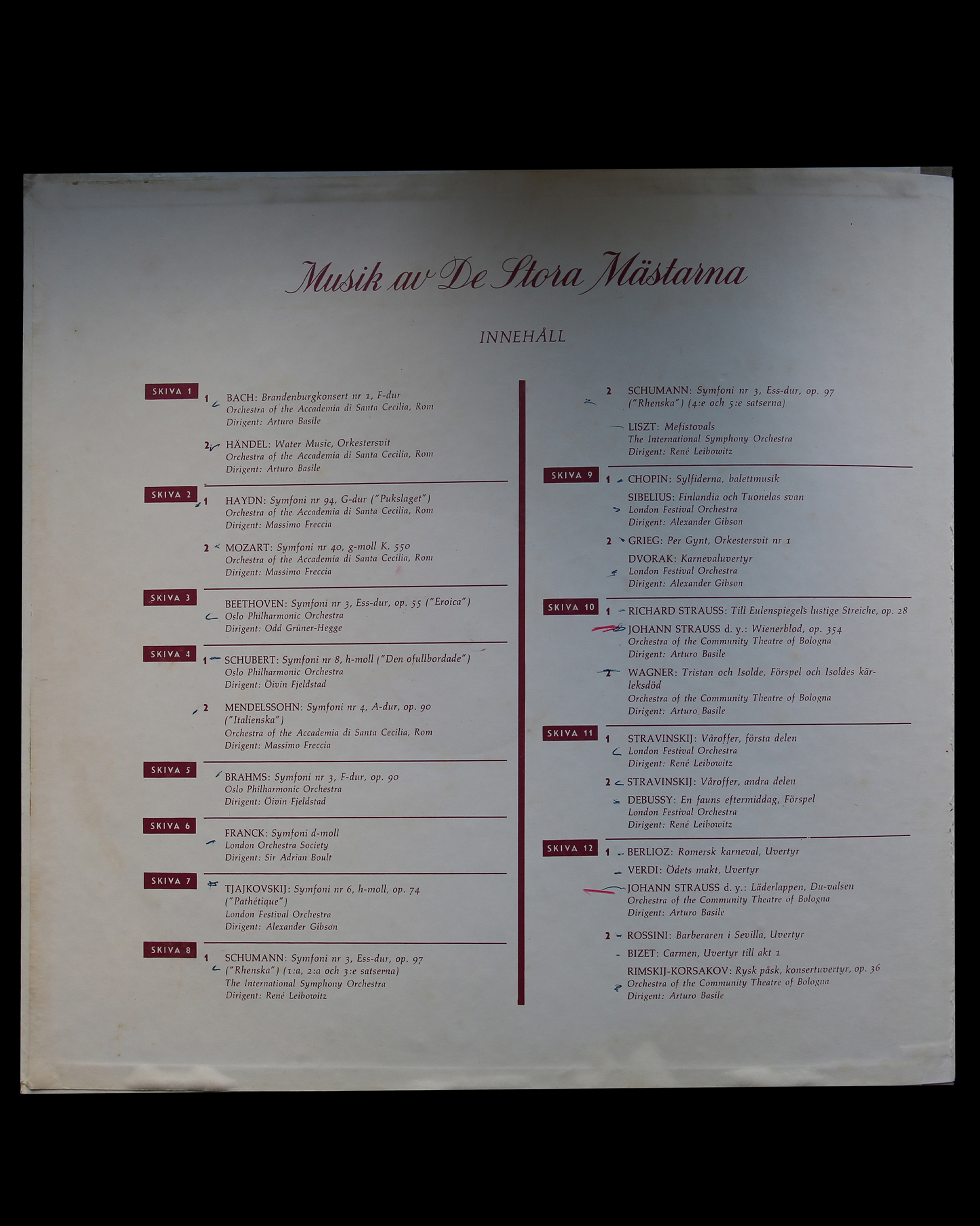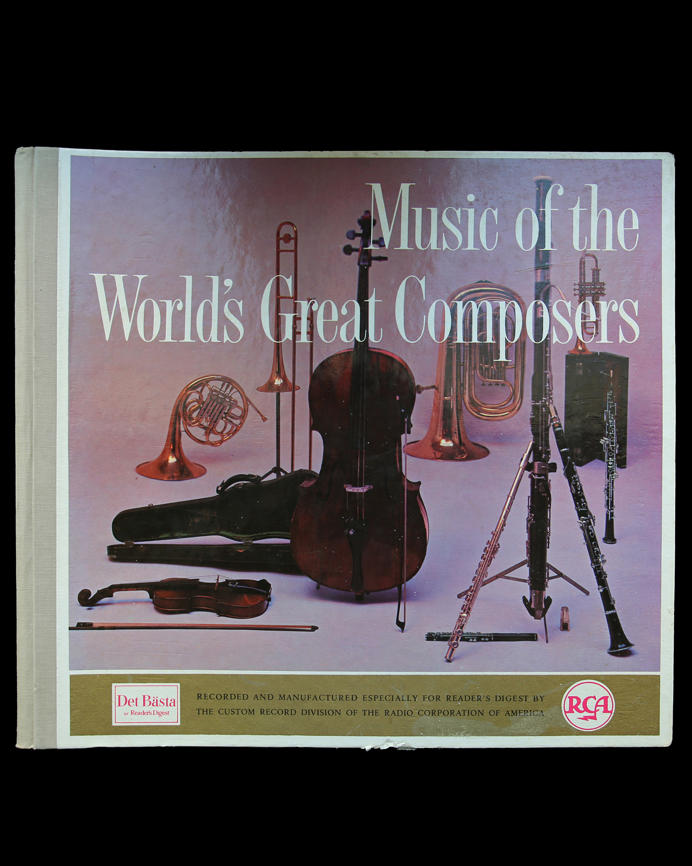 A sweeping collection of classical masterpieces performed by renowned European orchestras. Issued by Reader's Digest and RCA, this elegant box set offers over 12 hours of music from Bach, Mozart, Beethoven, Tchaikovsky, Debussy, and other legendary composers.
