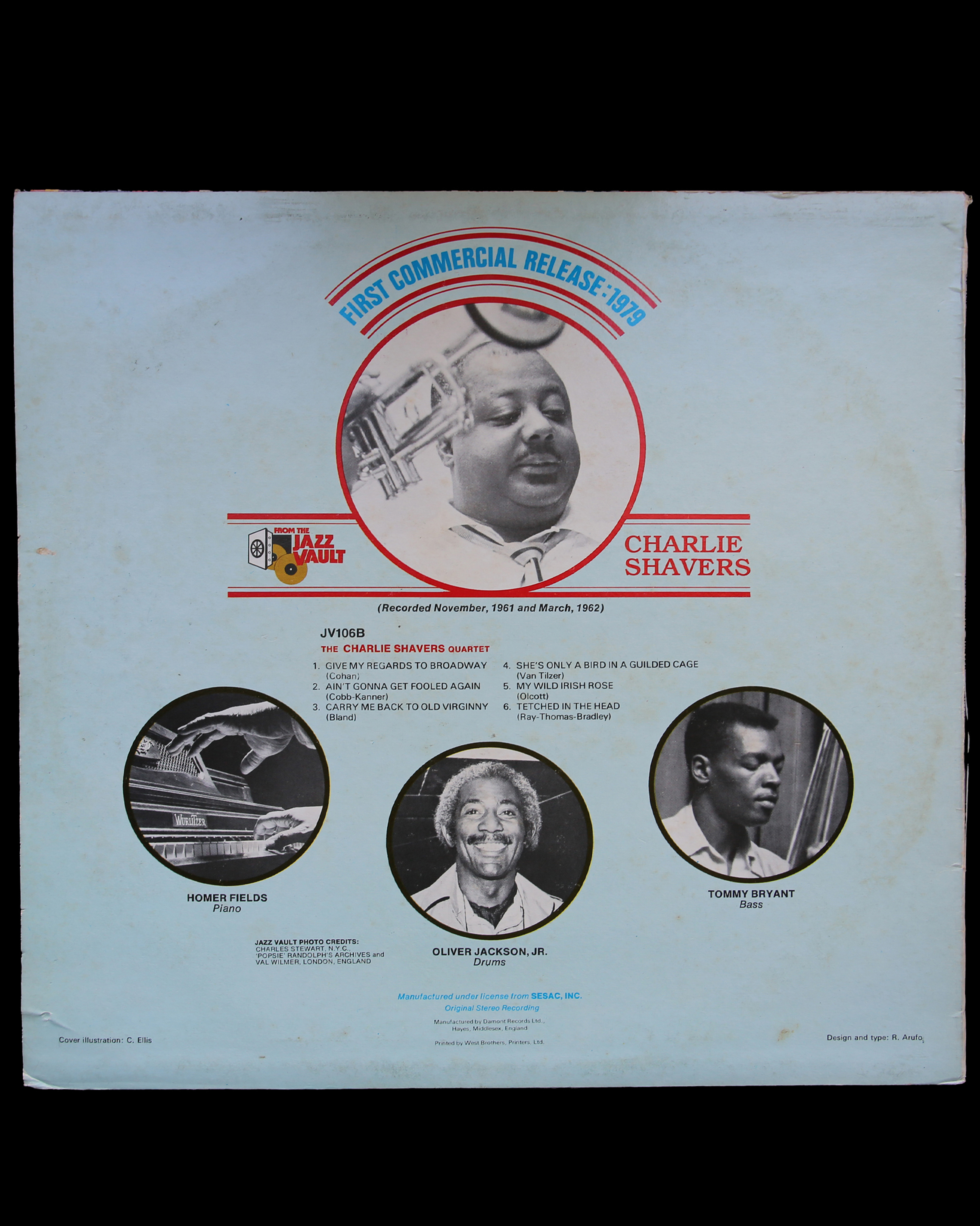 A vibrant release capturing the spirit of American jazz through the unmistakable trumpet of Charlie Shavers. This 1979 vinyl brings together intimate quartet sessions recorded in 1961 and 1963, issued here for the first time as part of the Jazz Vault series. Pressed in England by Damont Records Ltd., the album features warm and spontaneous interpretations of classics like “Old Apple Tree,” “My Old Kentucky Home,” and “In the Good Old Summertime.” Cover art by R. Andy adds a splash of color to this collectible gem.