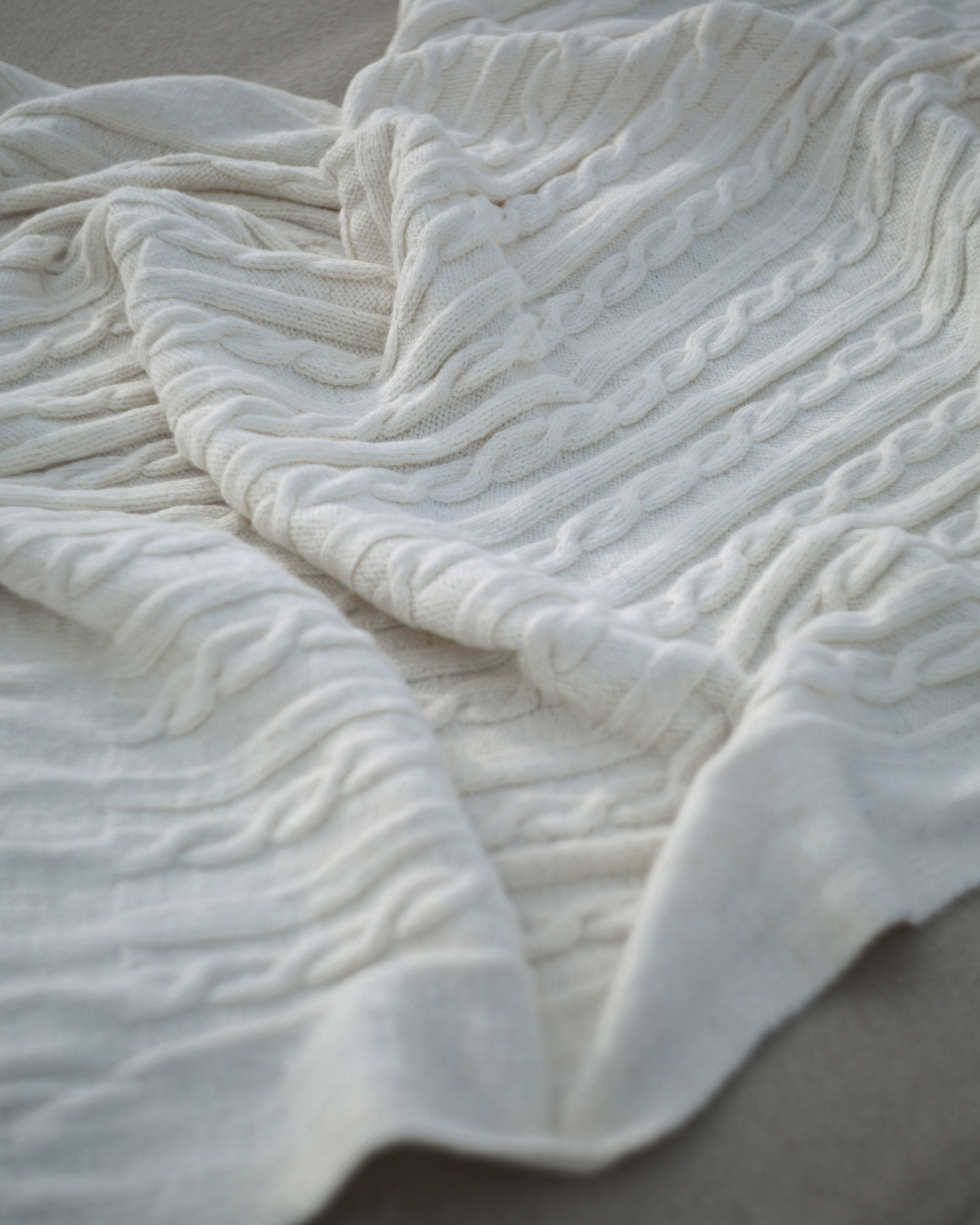 Handmade Mountain Goat Wool Ivory Cable Blanket