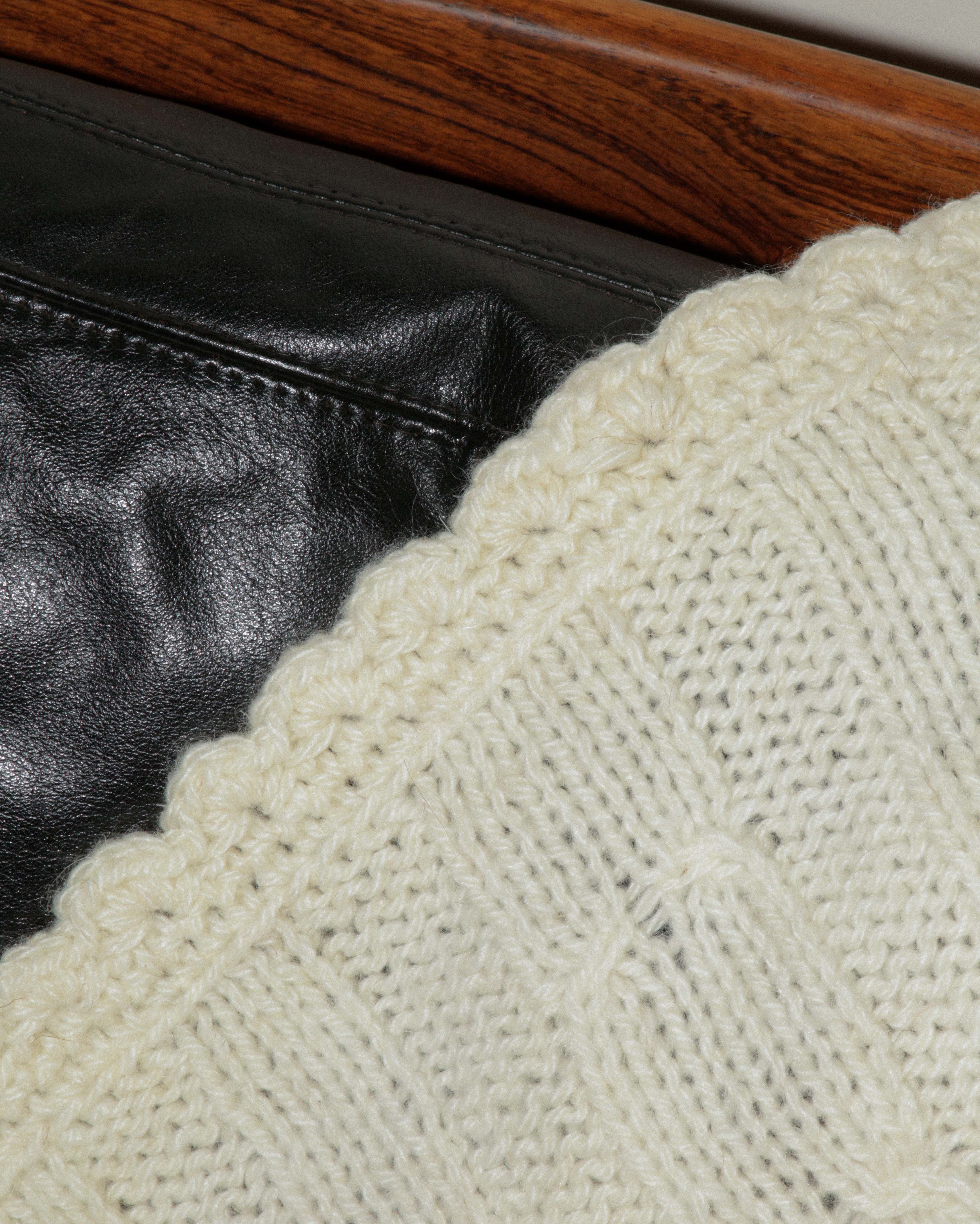 This handmade blanket is knitted from raw mountain goat wool in its natural light ivory tone. Soft in feel but dense and warm, with a classic cable pattern running across the surface. Fully non-factory made, without dyes or industrial processing — only natural wool and careful handwork. A bright, calm winter piece and a beautiful New Year gift with real warmth behind it.Handmade